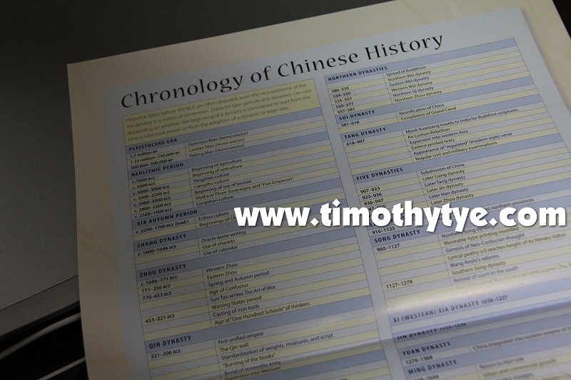 Another supplement that comes with the book is the "Chronology of Chinese History", a pull-out that shows the history of China in chronological order begeinning from 1.7 million years before present time until 1949, when the People's Republic of China was established.
